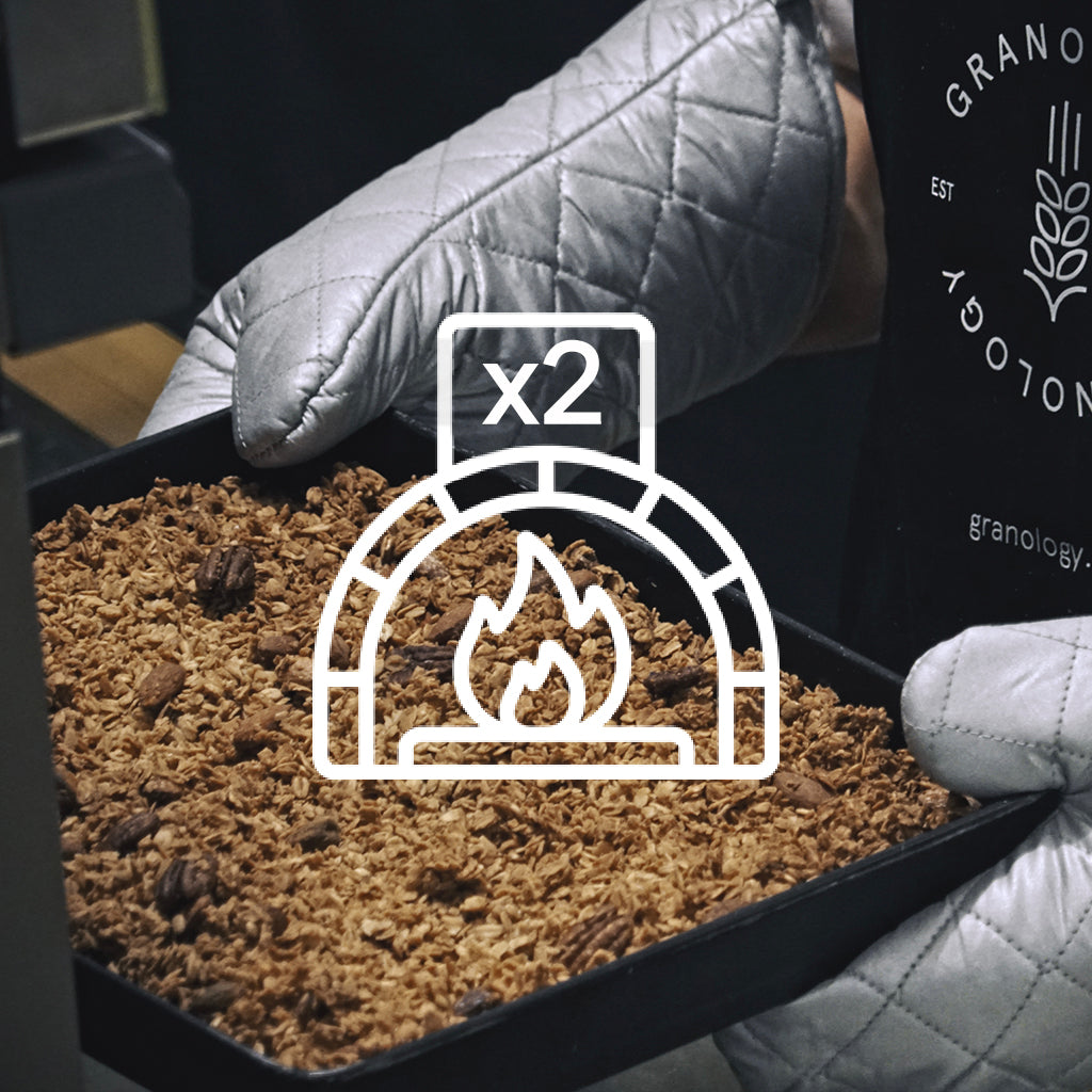 100% Handmade, the granola is thoroughly double-roasted with Hygiene Management. This process provides more texture, prevents clumping, adds crispiness, and makes it easier to chew.